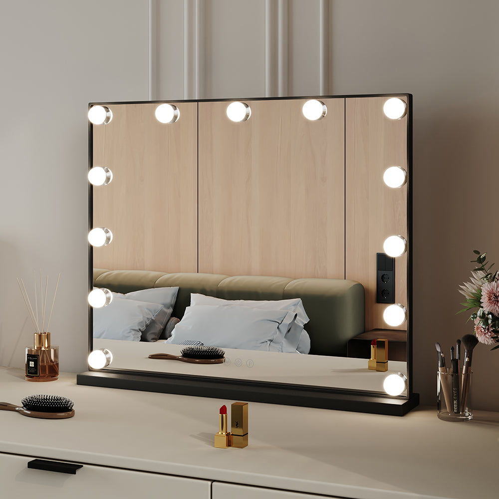 Black Tabletop Rectangle Hollywood LED Makeup Vanity Mirror-62x52 cm