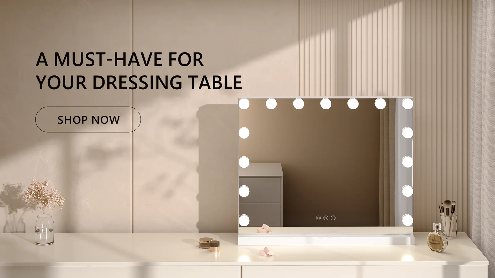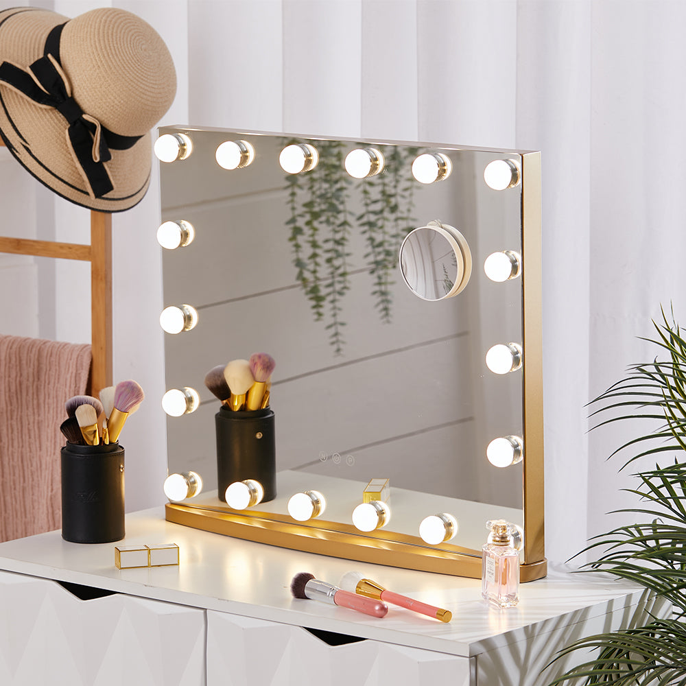 Desktop Square LED Vanity Mirror With 16 bulbs 50cm W