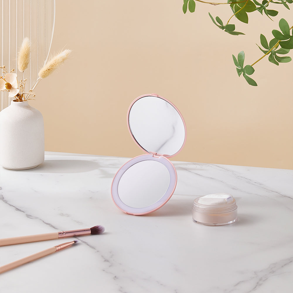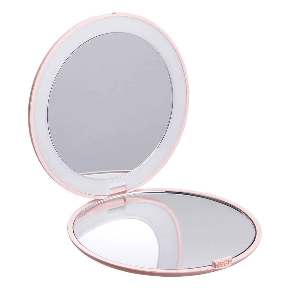Chic Pink Double-Sided Makeup Mirror with LED Light