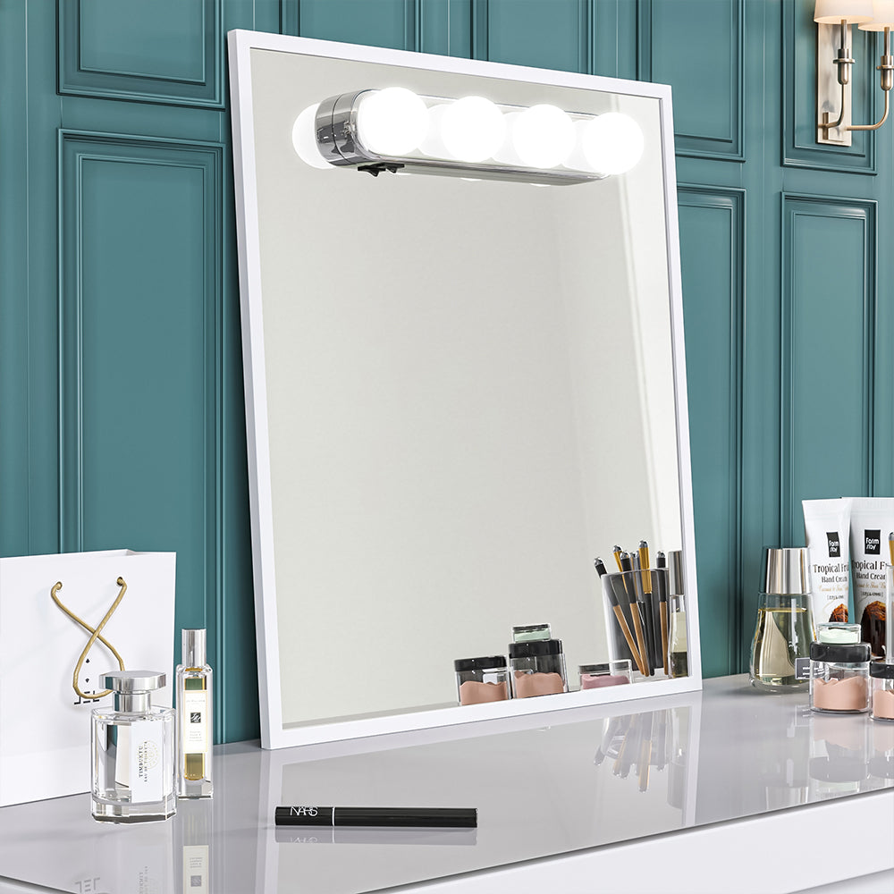 White Hollywood Style Metal Rectangular LED Makeup Mirror with Base-40 x 52 cm