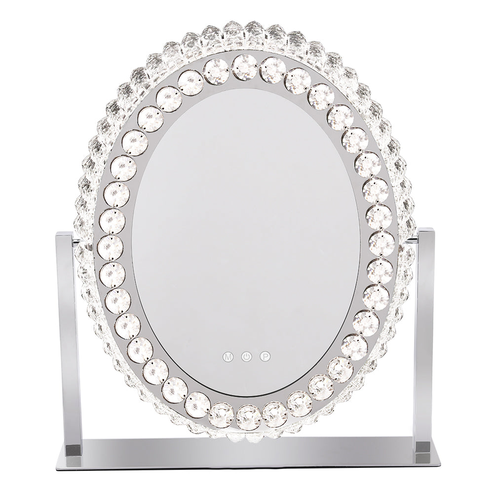 Oval Makeup Mirror Crystal LED Vanity Mirror with Touch Screen - 46×51cm