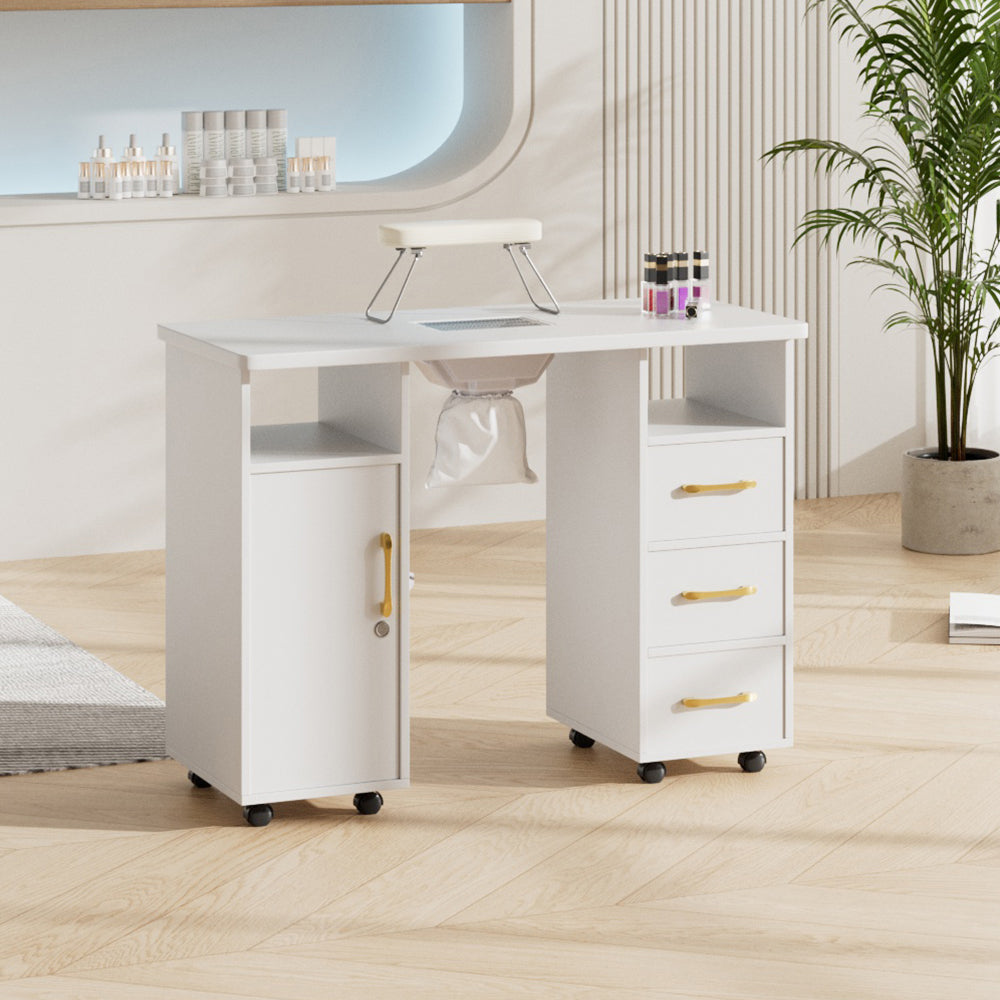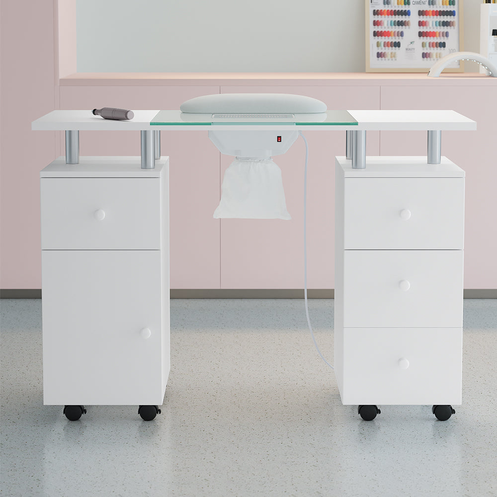 The Glass Top Nail Table with Dust Collector, Three Drawers and a Cabinet