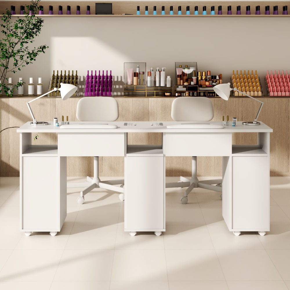The Portable Double-Person Nail Table with Dust Collector, Drawers and Open Shelves