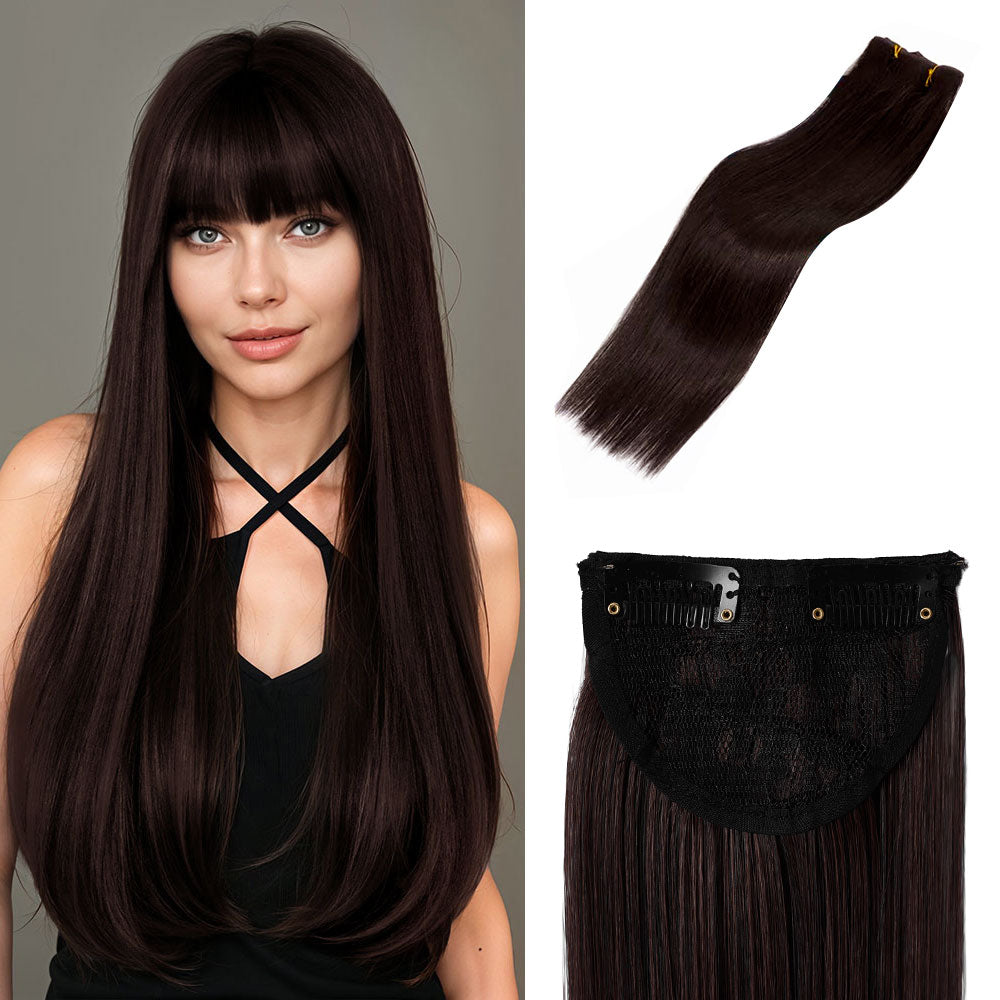 Three Piece Long Straight Hair Wigs Set with One-Piece Clip-On Hair Extensions