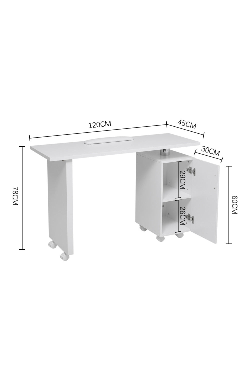 Functionality comes first in our manicure table. It features a convenient cabinet, providing ample storage space for your manicure essentials, including nail polish and tools, ensuring quick access to everything you need during a manicure session. Mobility is made easy with the inclusion of six sturdy castors. You can move the table around your salon, accommodating different client needs or rearranging your workspace. The ergonomic wrist rest provides support and helps reduce strain during nail treatments, creating a more relaxing experience for your clients.