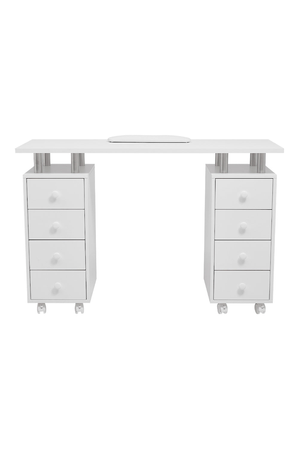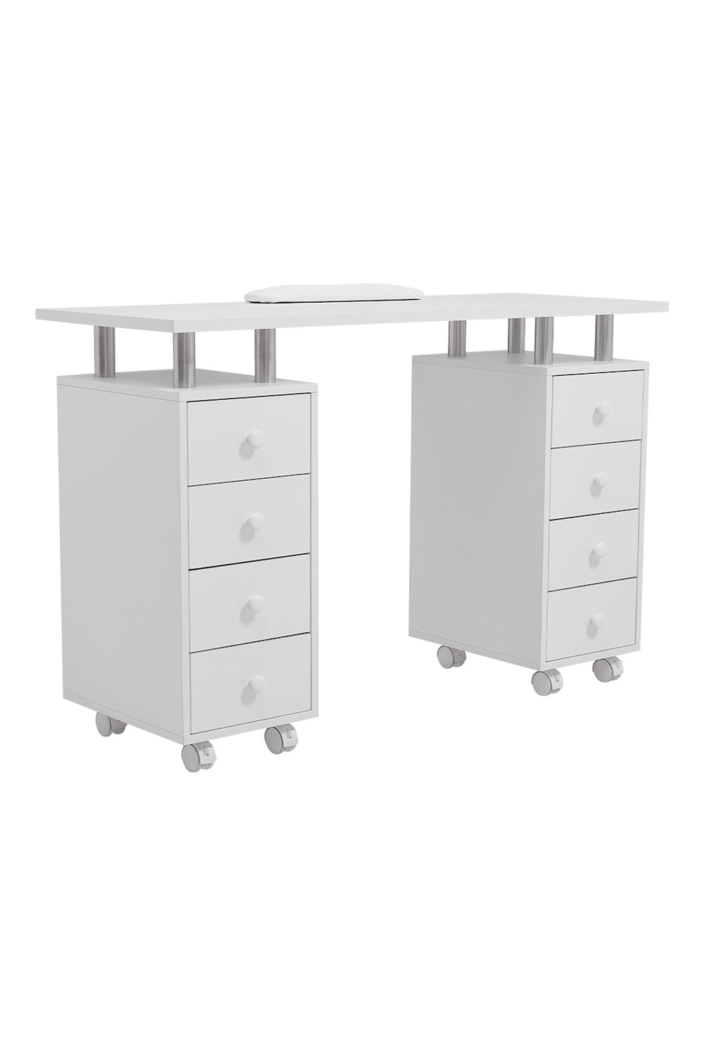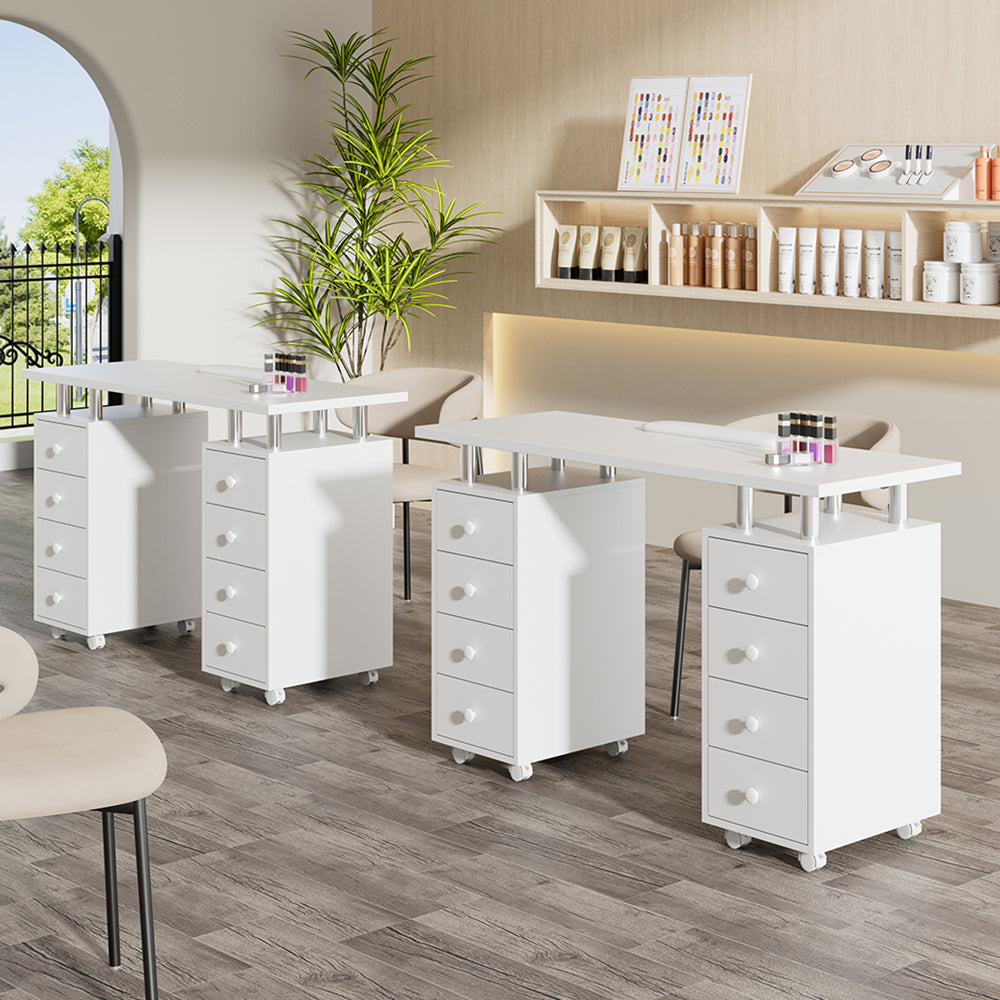 With this white finished manicure table, your salon will be added a touch of chic and fashionable vibes. Its 8-drawer design gives you more room to store and classify your nail polishes, which also creates a professional image that fits right in your high-end salon. Moreover, in order to upgrade the experience of your clients, we designed a thick padded cushion on the tabletop, allowing them to rest their wrists while having their nails done.