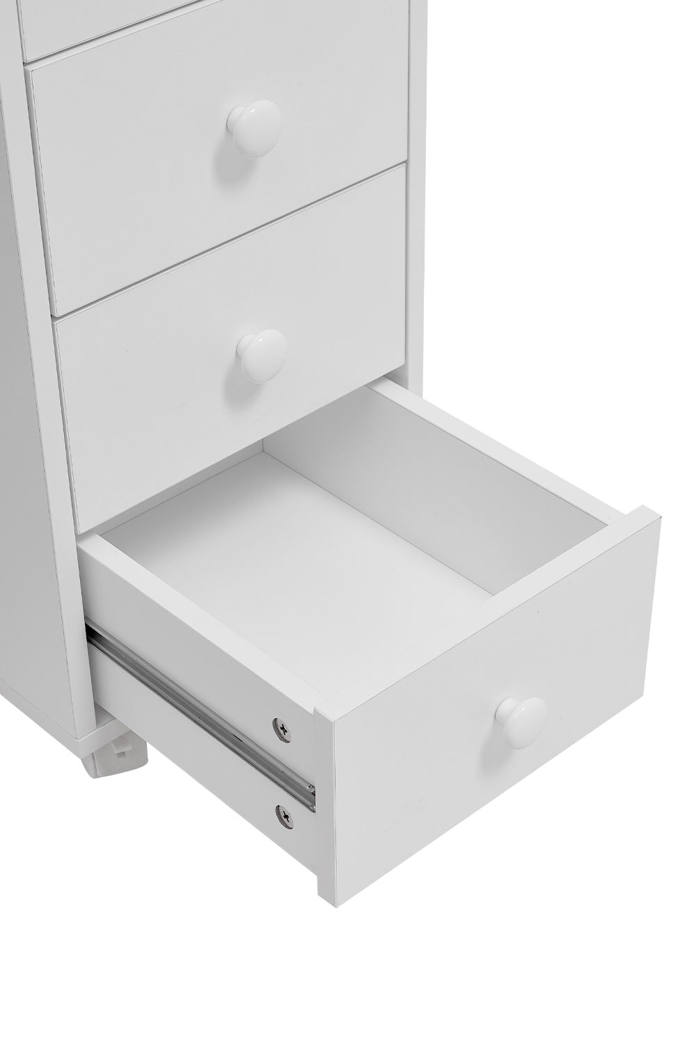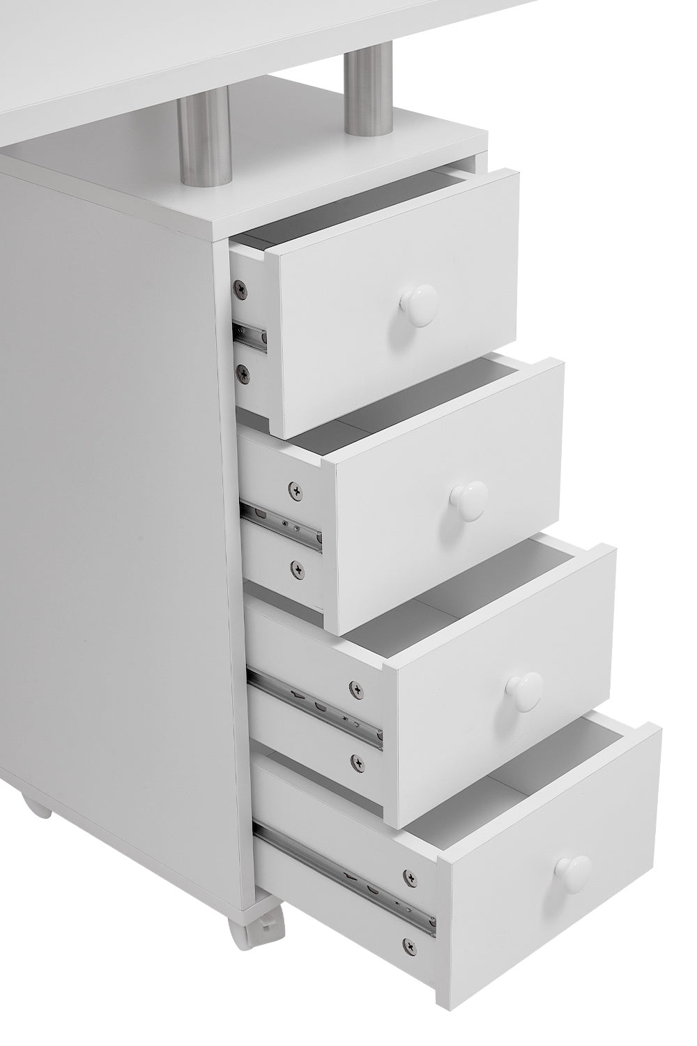 - The drawers glide on 3-section ball bearing slides