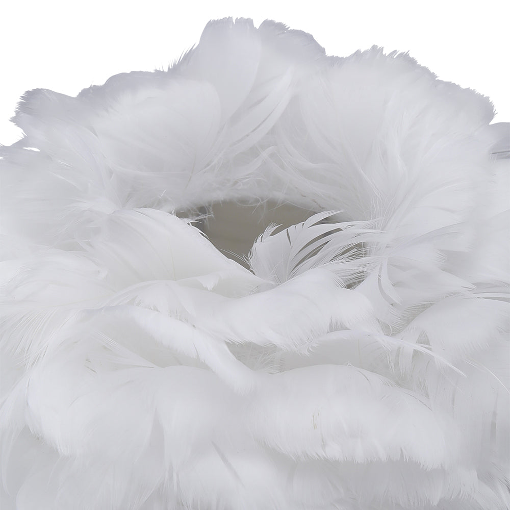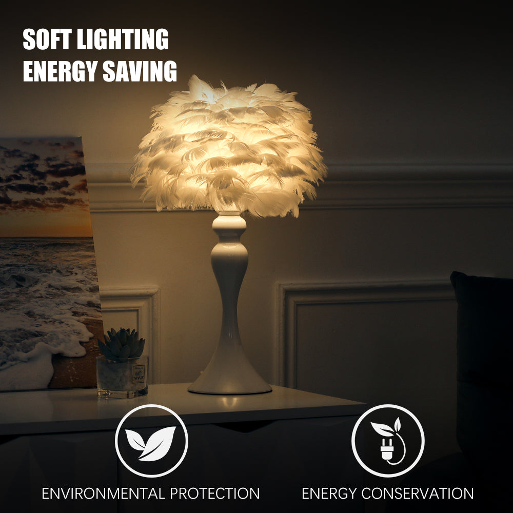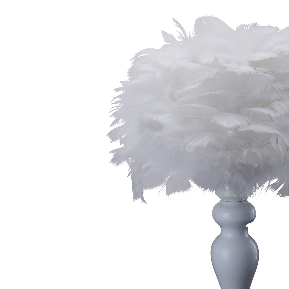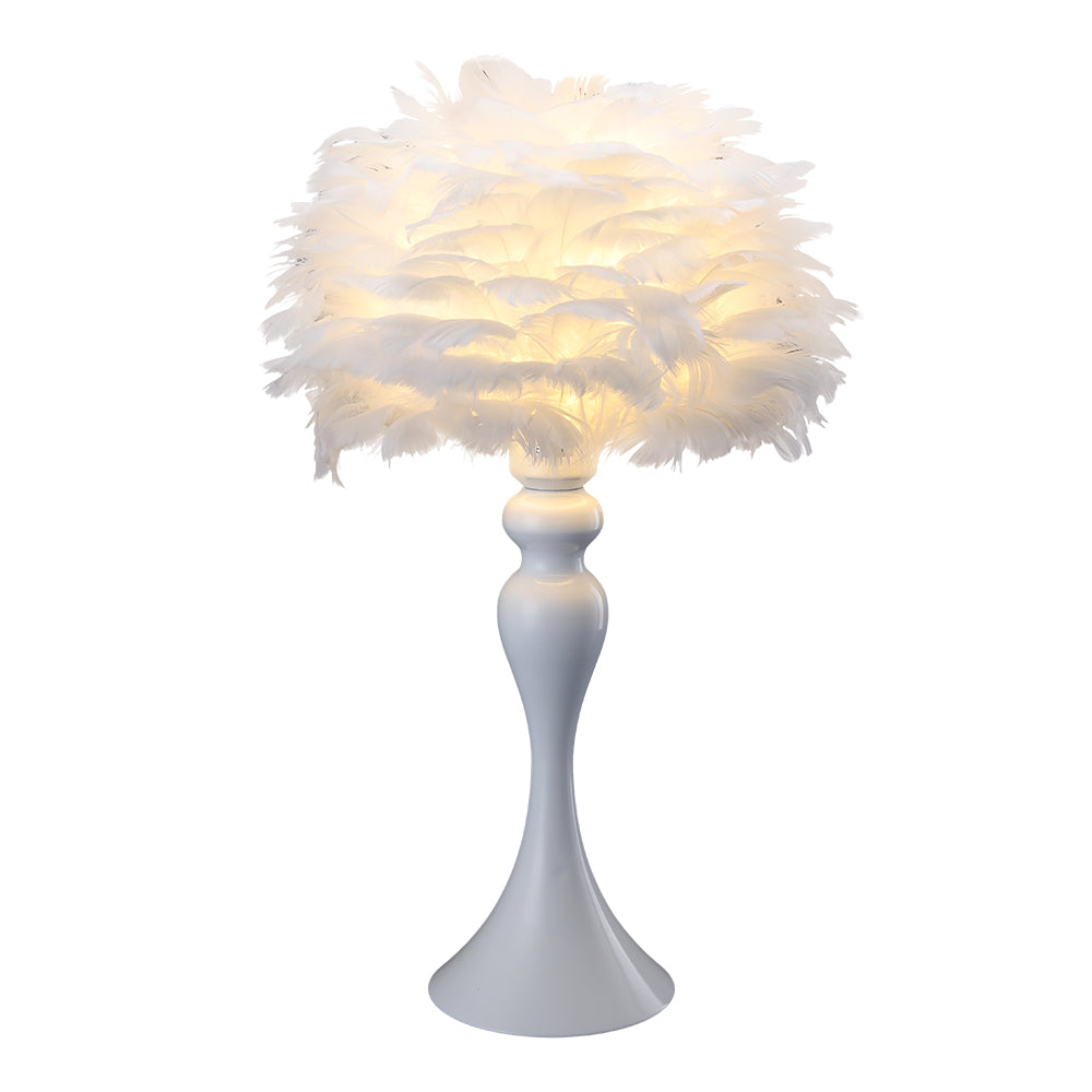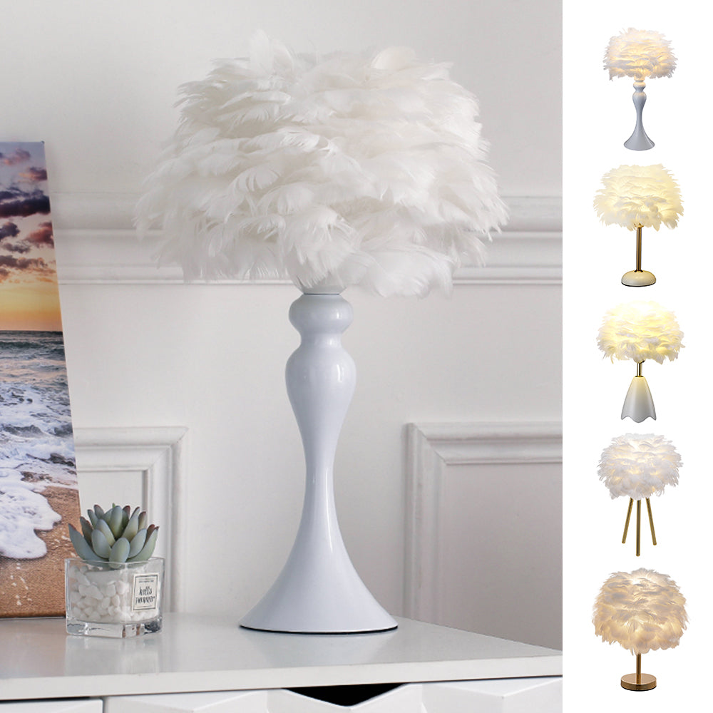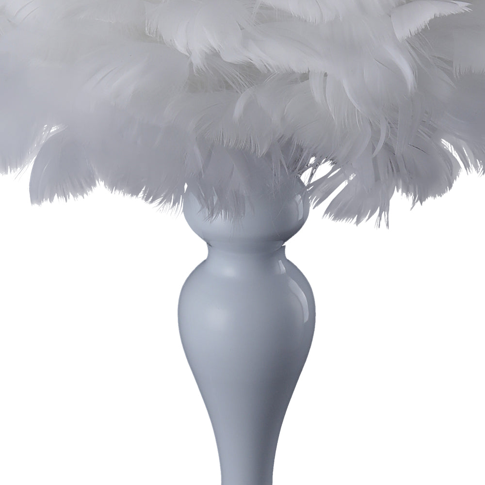 Modify the illumination in your room with this table lamp that radiates a warm glow. Diverging from conventional lampshades, we employ pure white feathers to allow the light to gently emanate and disperse in dim corners, offering visual delight and mental serenity. The white metal base is sure to catch eyes with a cinched waist and symmetrical curves. Perfect for embellishing any corner, be it a bedroom or living room.