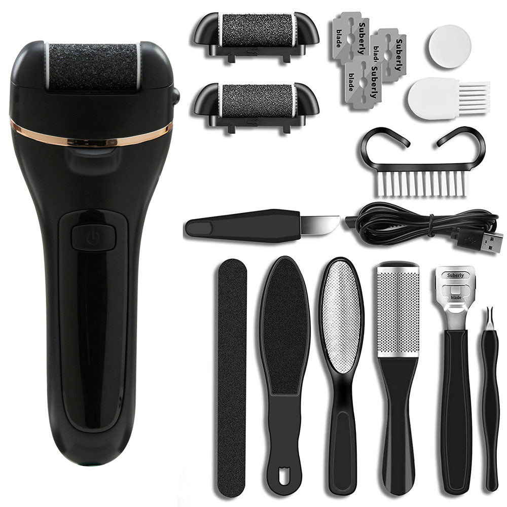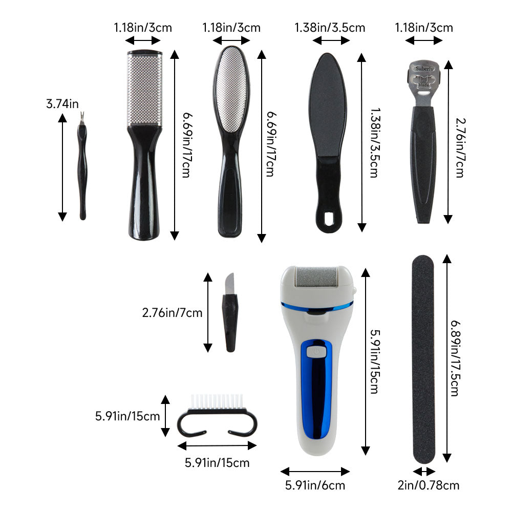 This electric foot care kit is your personal foot care expert! With its 360° automatic roller design and 2 speed modes, it closely conforms to the surface of your feet, effectively and easily removing calluses and dead skin. A built-in smart sensor automatically stops the device if too much pressure is applied, preventing skin injuries. The LED light automatically illuminates the usage area during operation, providing extra lighting. Additionally, it features IPX7 water resistance and a one-click replacement design, making it easy to clean without worrying about water damage. It also includes 10 other accessories and tools for a comprehensive foot care experience.