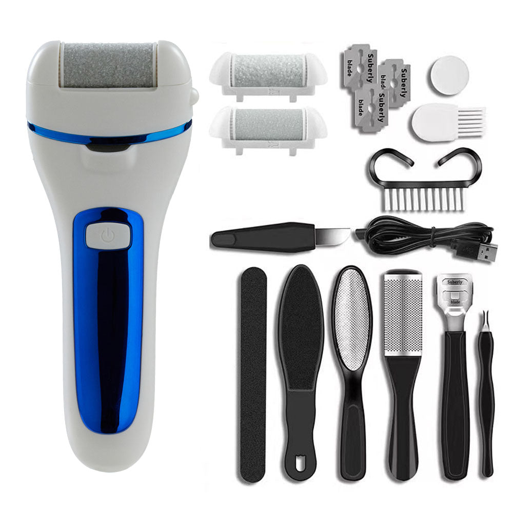 - Three roller heads with different grits, made from quartz sand, are designed to suit a variety of care needs.