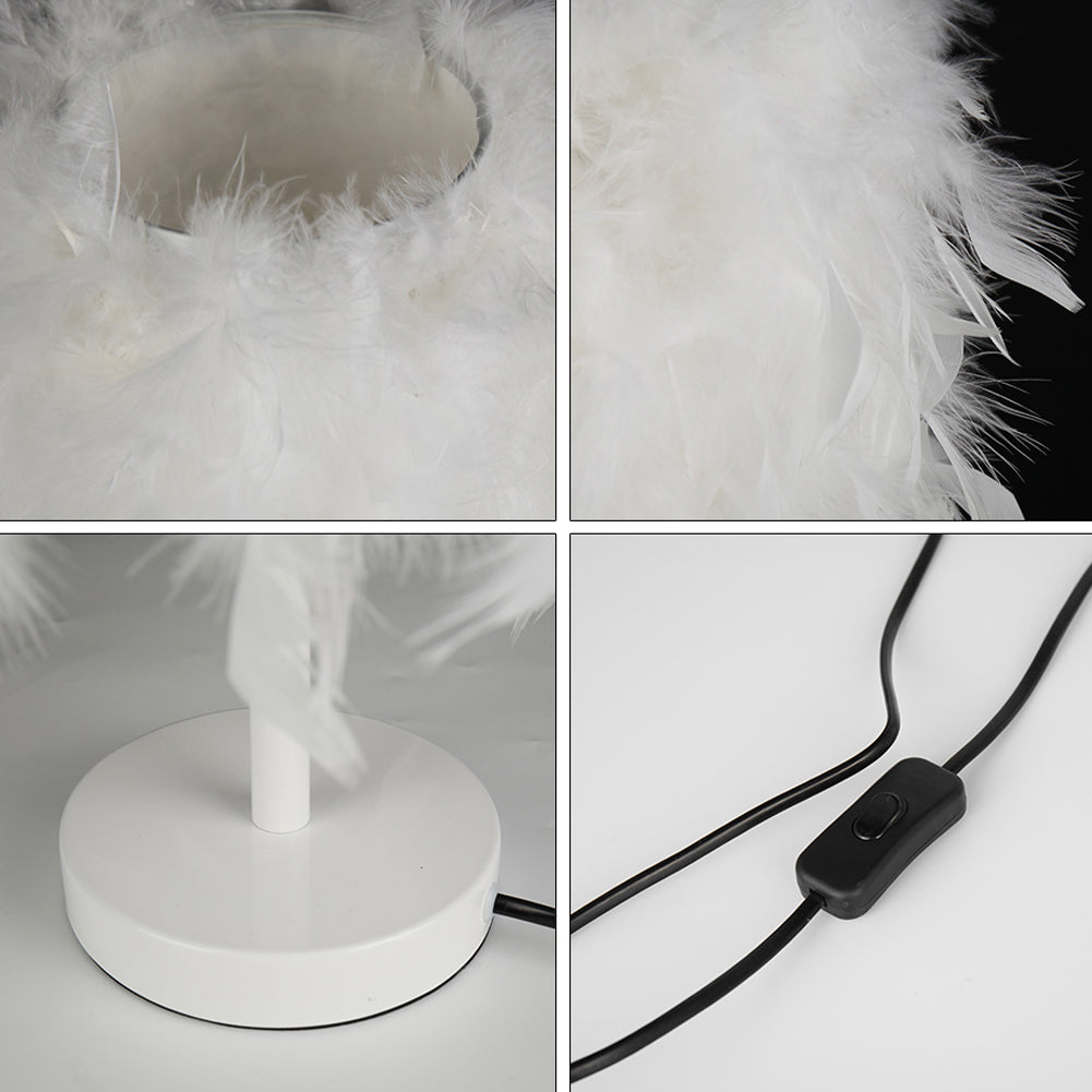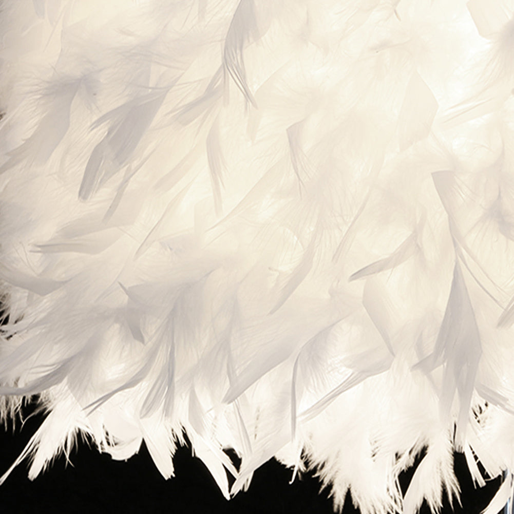 The base is metal with a glossy finish, which is a glamorous contrast to the fluffy white feather. This table lamp is the right addition to bring romance to your living space. From its slick base to the fluffy white feather, you’ll love the rich combination of materials. This table lamp will fit in any environment easily, don’t hesitate to bring it home.