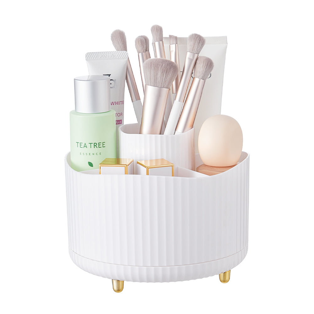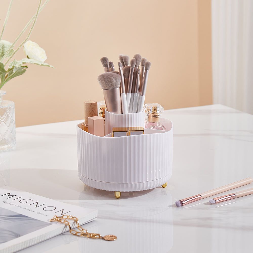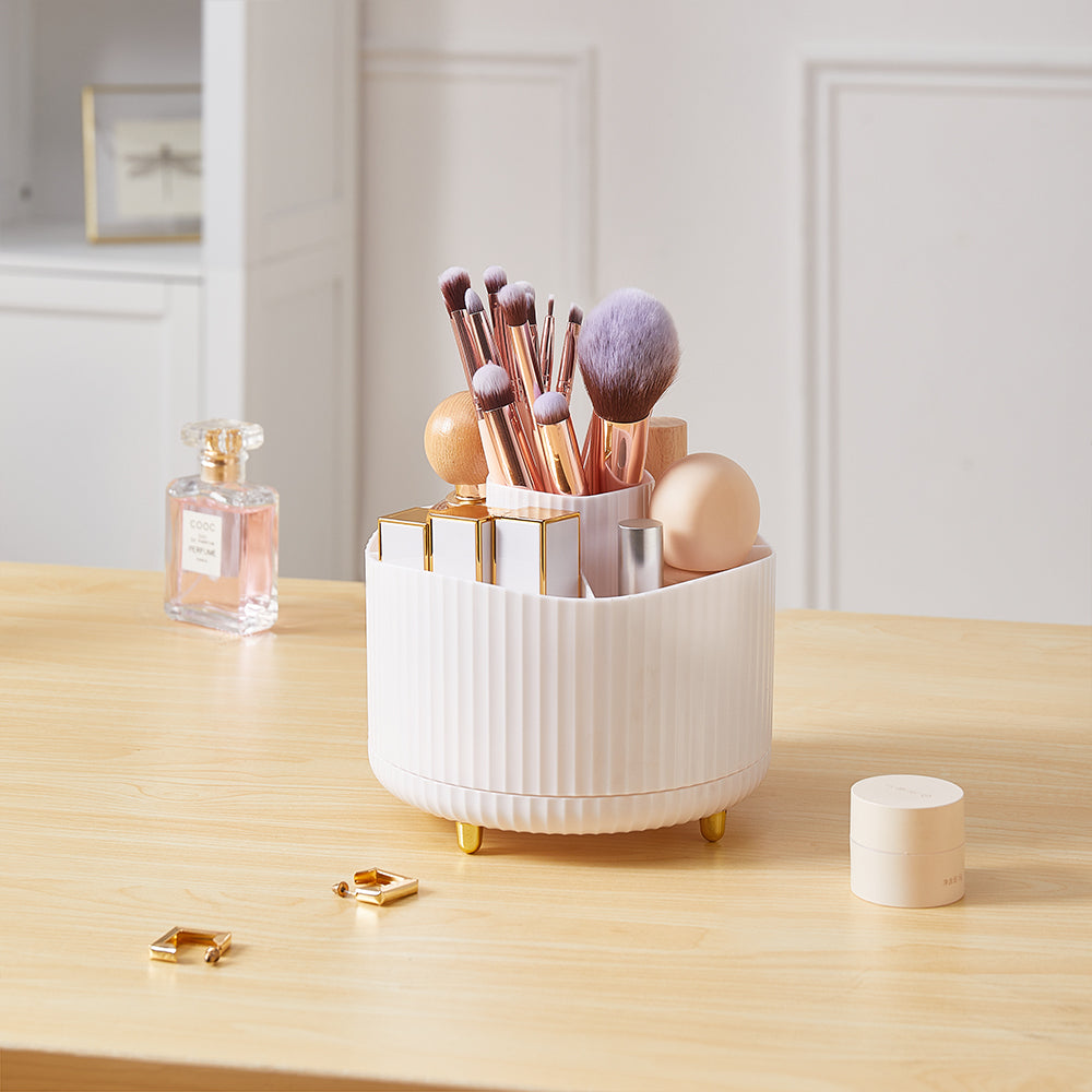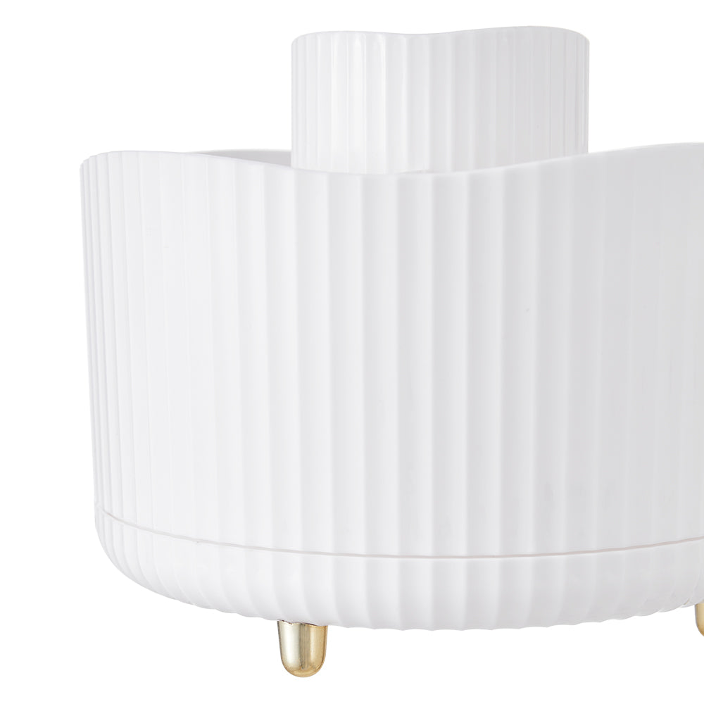 Designed with 5 compartments, this organizer keeps your makeup essentials in a circle, making it a practical and stylish solution to your dressing table. The holder features a fun rotating mechanism, allowing you to access your essentials with ease. Not limited to makeup brushes, it is also a great fit for your lipsticks and nail polish. With a simple design, it makes a subtle showpiece as well.