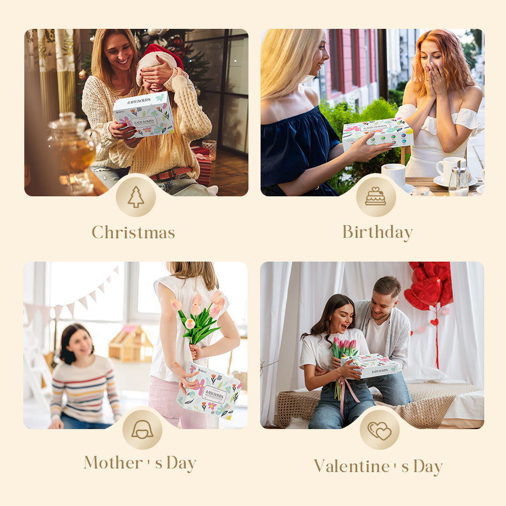 A harmonious blend of natural ingredients and essential oils, coupled with a three-layer-colour, offers a visual feast. Each bath bomb is rich in minerals, softening the keratin of your skin and deeply nourishing your skin. As they dissolve in warm water, they release an enchanting fragrance, immersing you in a spa-like bathing experience amidst a kaleidoscope of colours. The exquisite gift box packaging makes it the perfect choice for gifting or personal use.