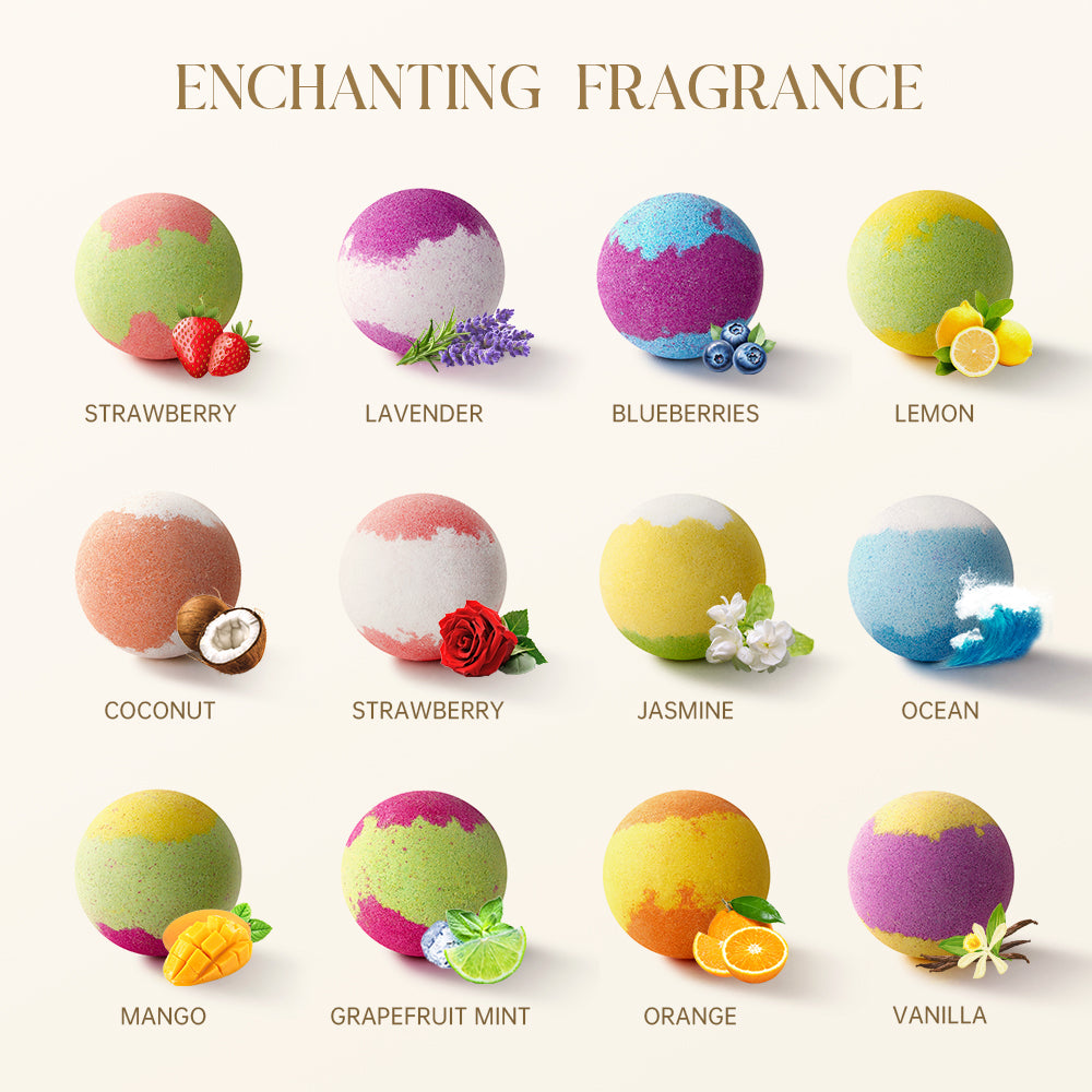 - Each bath bomb infuses your bath with stunning colours and enchanting aromas, transforming your routine into a spa-like experience.